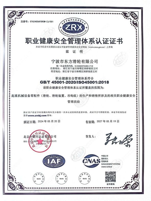 寧波市東方滑輪有限公司(簡稱寧波東方滑輪),成立于1998年,位于浙江省寧波市海曙區(qū),是一家專業(yè)從事鋼絲索相關(guān)滑輪傳動裝置的開發(fā)研究、創(chuàng)新設(shè)計及精密制造的廠家。2004年首批通過了ISO9001質(zhì)量管理體系認證,2021年由中國船級社頒發(fā)了《CCS工廠認可證書》,公司還擁有多項國際領(lǐng)先的發(fā)明和實用新型專利,參與起草國家機械部標準認定《JB-T8398-1996雙幅板壓制滑輪》,現(xiàn)有員工逾百人。